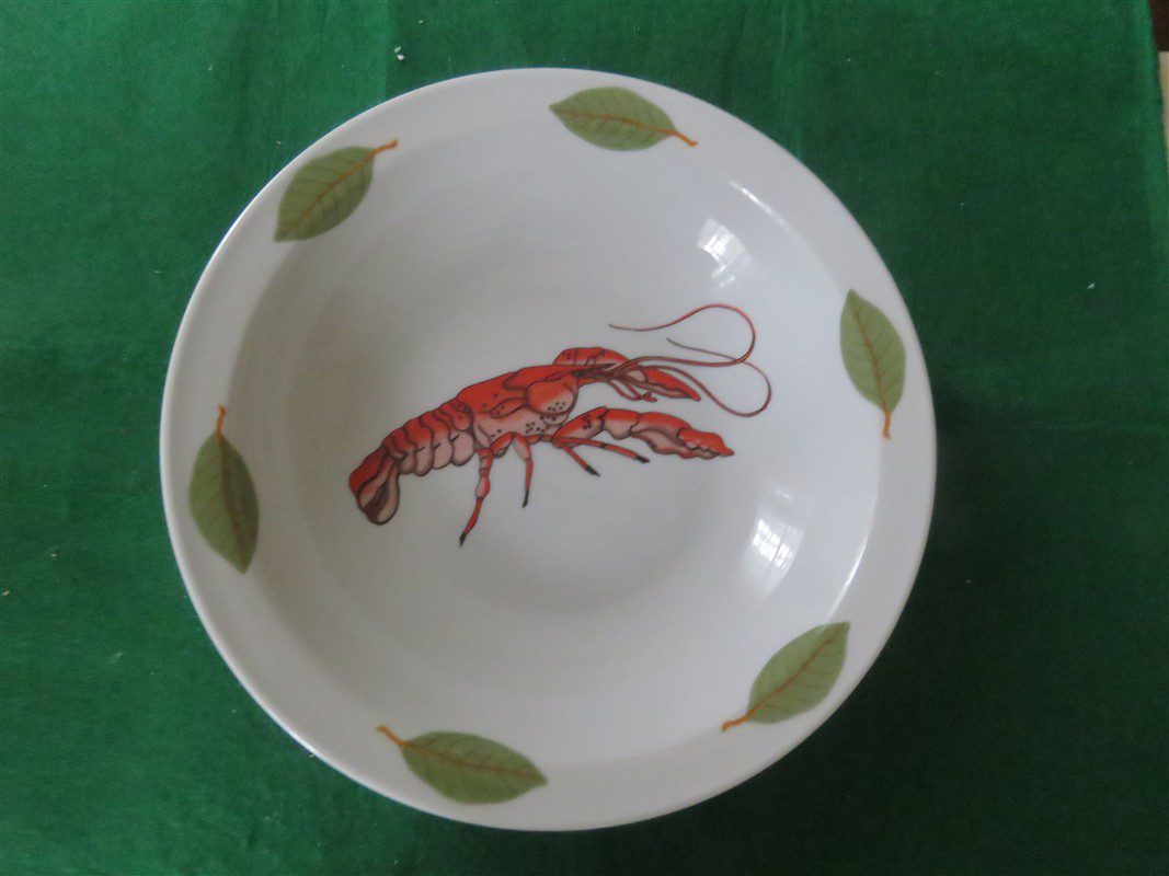 Lobster Soup Bowl Gumbo Dish Elmar Collection Red lobster image in the middle Green leaves on the rim. 8 7/8 inchs diameter Very good condition. No visible wear. All vintage items must be considered as used. |