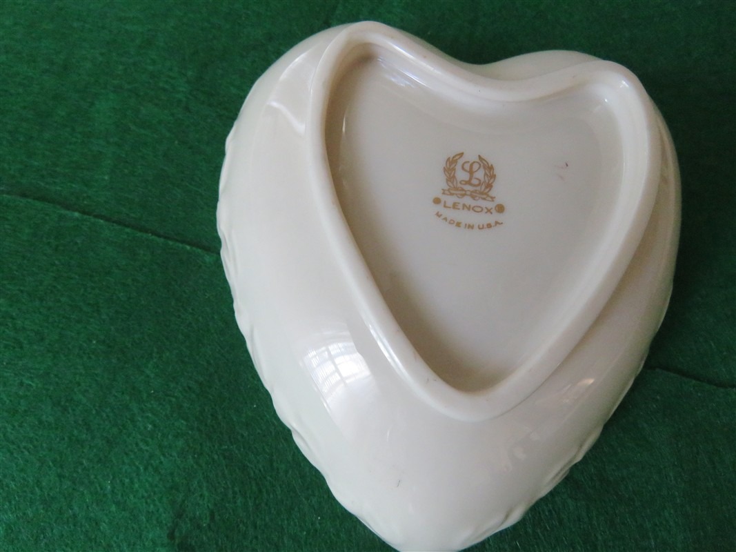 Add a touch of timeless elegance to your collection with this beautiful Lenox heart-shaped trinket box in the classic “Rhodora” rose pattern.
