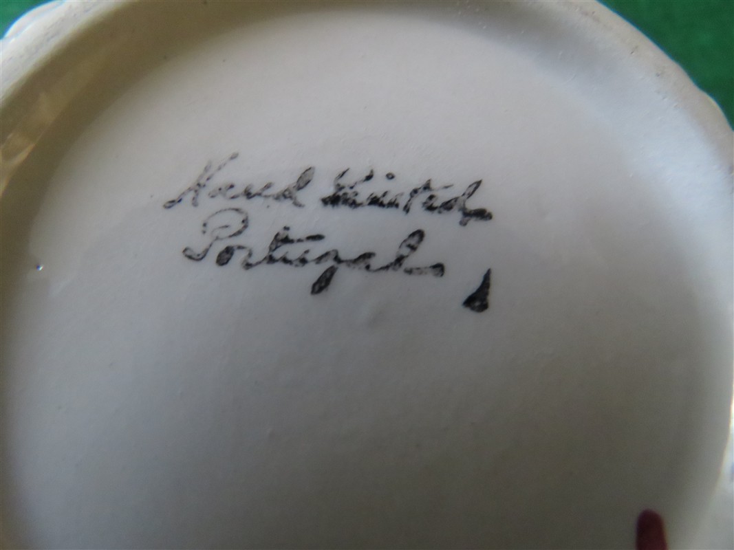 Barbotine Bowls 2-bowls 1980’s Pink rim. Flower, leaf and berries on one side. White body. Made in Portugal. 5 ½ inches diameter 3 inches deep. Printed on botton is “Hand Painted Portugal” Excellent condition. No chips, dings or scratches. All vintage items must be considered as used. |