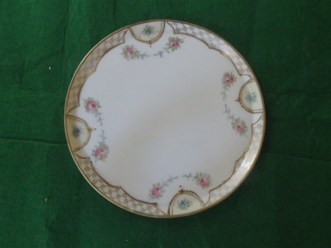 Some of the gold trim is raised. Gold trim with pink and green floral.