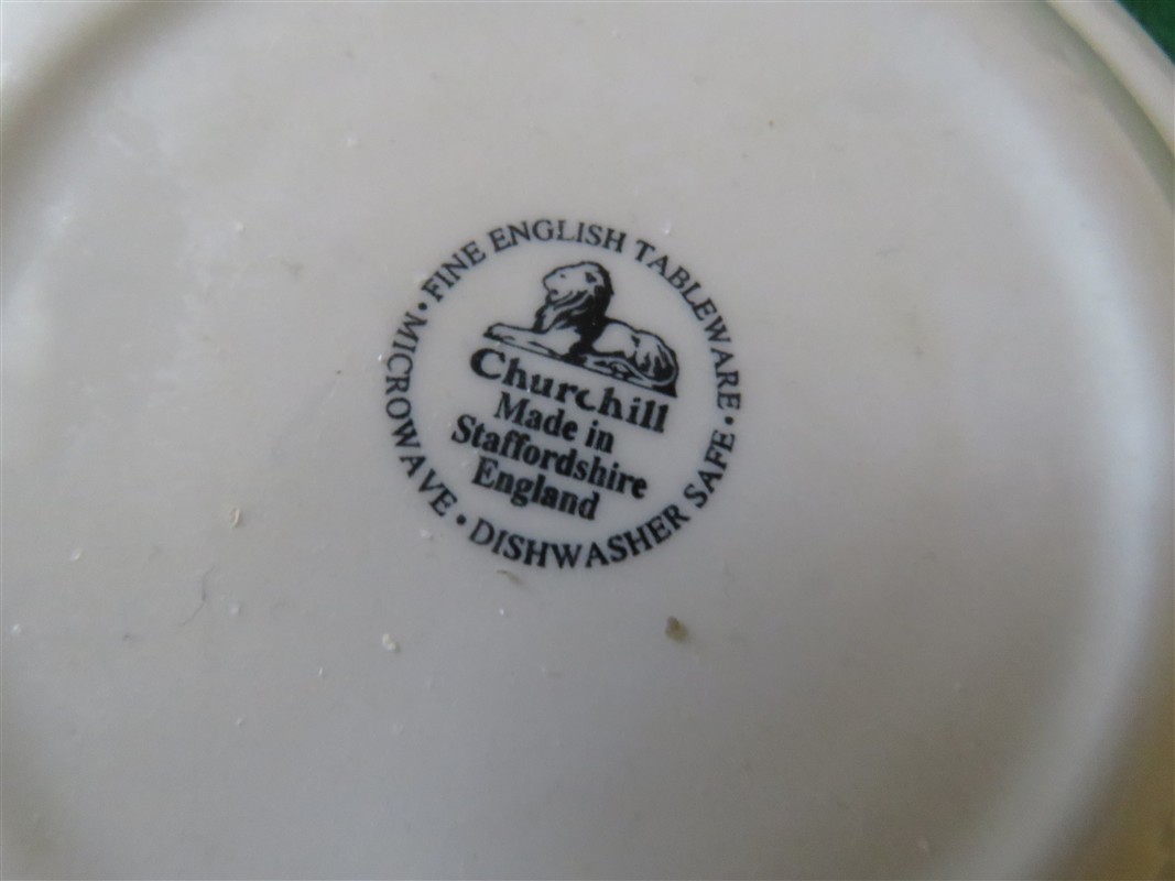 Made by Staffordshire Made in England. Decagon shape. Fruits, flowers, green trim. 5 ¾ inches diameter. Excellent condition. No chips, dings or scratches. All vintage items must be considered as used. |